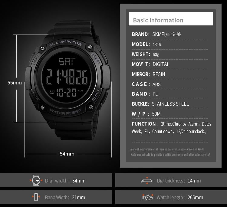 Jam Tangan SKMEI Seri 1346 dilengkapi dengan tampilan dan desain yang modern. Jam Tangan ini sangat cocok digunakan untuk keperluan sehari-hari khususnya bagi kaum pria untuk terlihat lebih unggul, keren dan macho.
