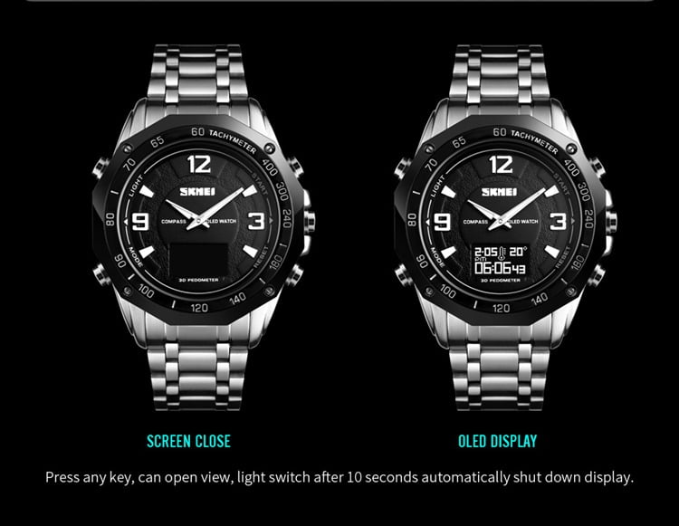 Bagian strap atau tali Jam Tangan SKMEI 1464 terbuat dari bahan Stainless Steel yang memiliki kualitas awet dan baik dibandingkan Merk kelas serupa lainnya.