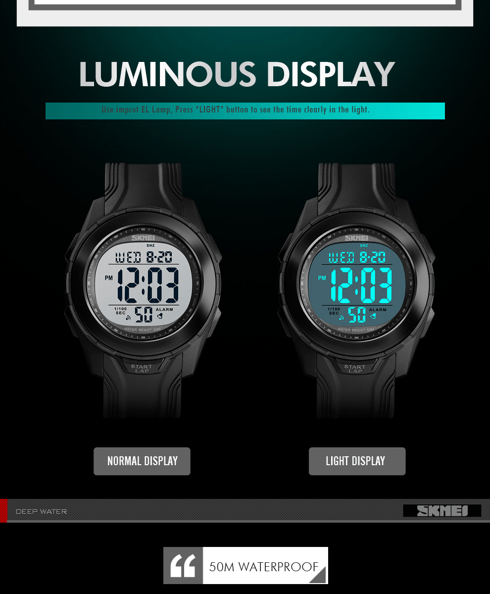 Arloji Tahan Air (Waterproof) SKMEI hadir dilengkapi dengan petunjuk waktu digital yang unik dan bergaya. Selain itu Jam Tangan ini mempunyai beragam fitur lainnya seperti Shock Resistant (Tahan Banting), El Light, Calendar, Stopwatch, Alarm, dll. Jenis Kelengkapan fitur berbeda pada setiap jam dan dapat dilihat langsung pada foto deskripsi produk untuk lebih jelasnya.