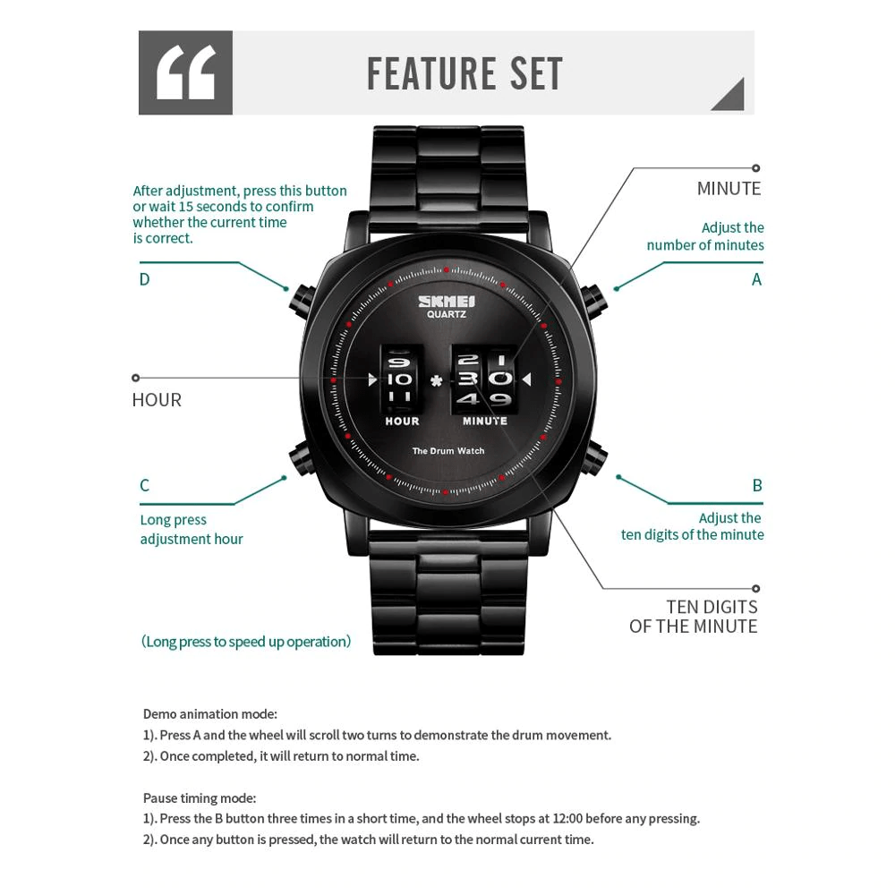 Arloji Tahan Air (Waterproof) SKMEI hadir dilengkapi dengan petunjuk waktu yang unik dan bergaya. Selain itu Jam Tangan ini mempunyai beragam fitur lainnya seperti Shock Resistant (Tahan Banting), El Light, Calendar, Stopwatch, Alarm, dll. Jenis Kelengkapan fitur berbeda pada setiap jam dan dapat dilihat langsung pada foto deskripsi produk untuk lebih jelasnya.