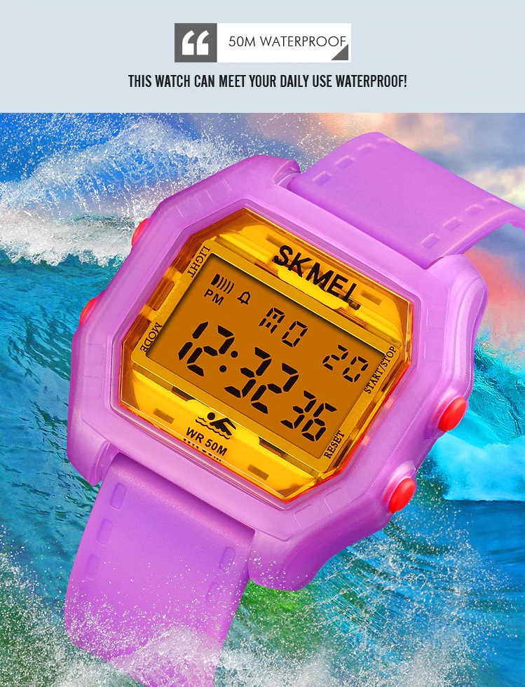 Kaca Jam Tangan Digital SKMEI 1623 ini terbuat dari bahan kaca yang terkenal awet dan tidak mudah pecah yaitu dengan material resin glass.
