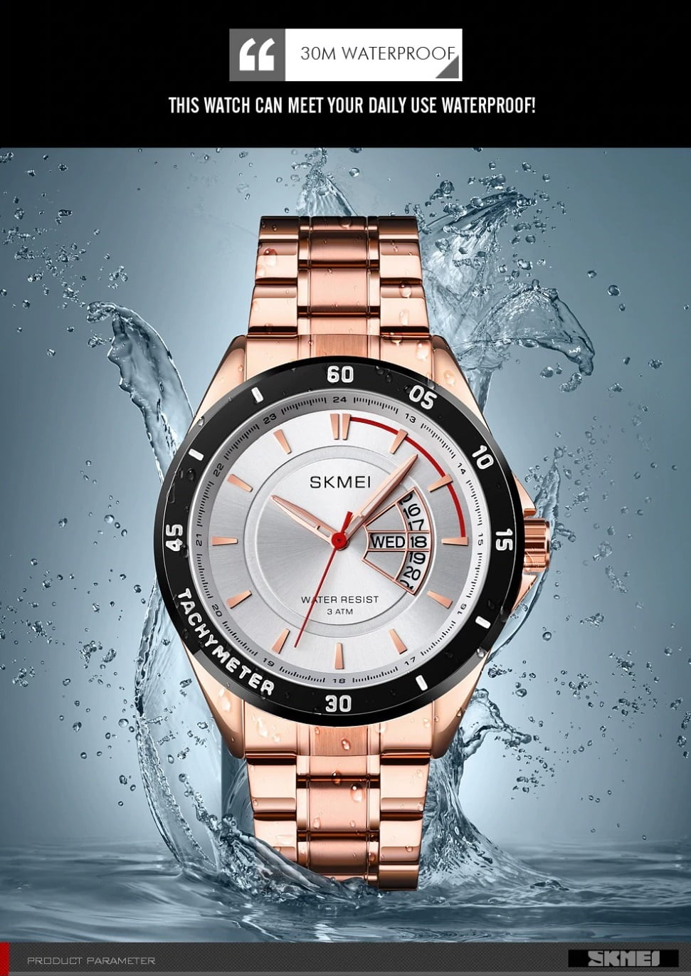 Salah satu kelebihan Jam Tangan SKMEI 1641 yaitu memiliki ketahanan air atau water resistance 30M / 3 ATM / 3 BAR. Sehingga dapat digunakan pada aktivitas seperti cuci tangan,dan Wudhu.
