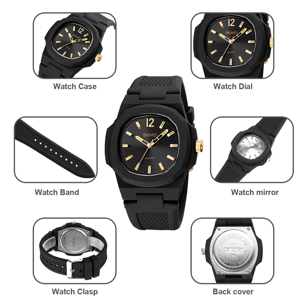 Jam Tangan SKMEI Seri 1717 dilengkapi dengan tampilan dan desain yang modern. Jam Tangan ini sangat cocok digunakan untuk keperluan sehari-hari khususnya bagi kaum wanita untuk terlihat lebih unggul, keren dan fashionable.