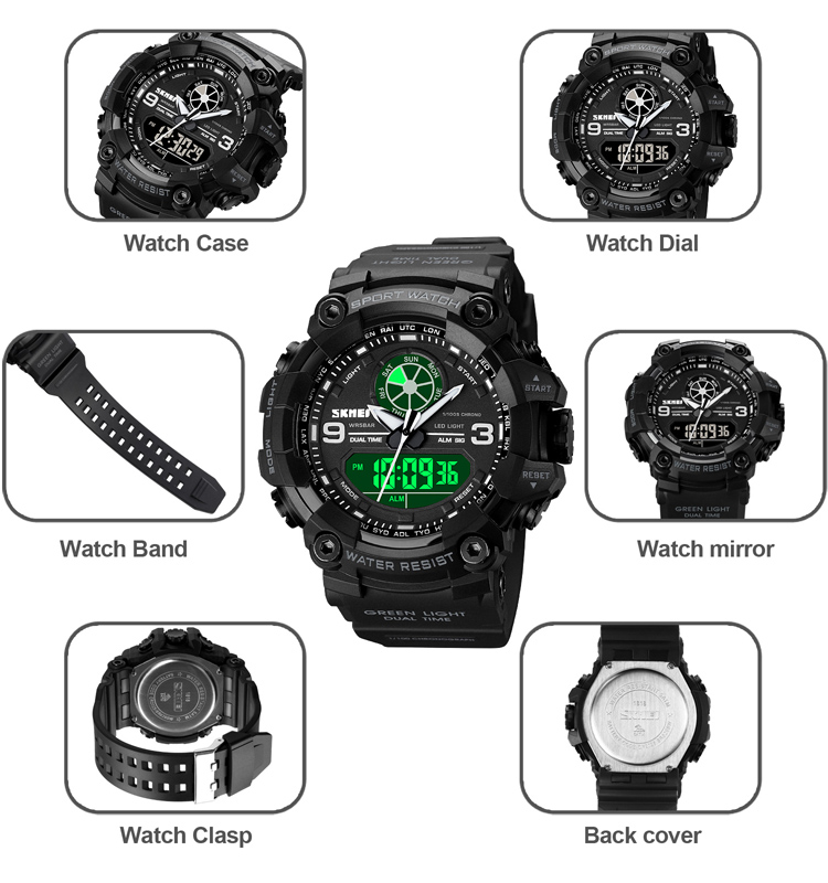 Arloji Tahan Air (Waterproof) SKMEI hadir dilengkapi dengan petunjuk waktu digital dan analog yang unik dan bergaya. Selain itu Jam Tangan ini mempunyai beragam fitur lainnya seperti Shock Resistant (Tahan Banting), El Light, Calendar, Stopwatch, Alarm, dll. Jenis Kelengkapan fitur berbeda pada setiap jam dan dapat dilihat langsung pada foto deskripsi produk untuk lebih jelasnya.