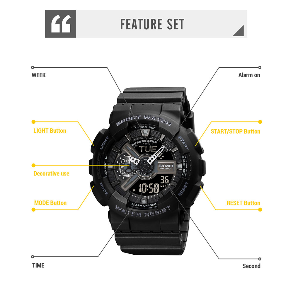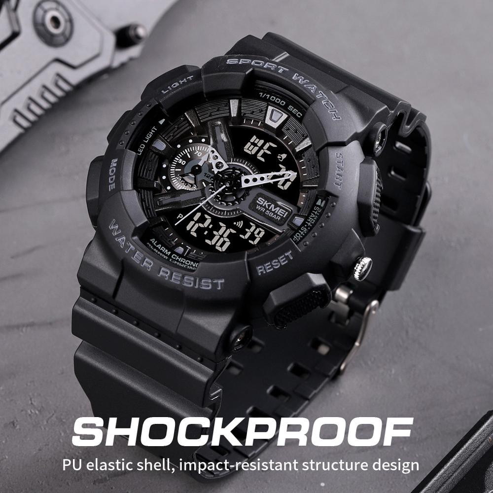 Arloji Tahan Air (Waterproof) SKMEI hadir dilengkapi dengan petunjuk waktu digital dan analog yang unik dan bergaya. Selain itu Jam Tangan ini mempunyai beragam fitur lainnya seperti Shock Resistant (Tahan Banting), El Light, Calendar, Stopwatch, Alarm, dll. Jenis Kelengkapan fitur berbeda pada setiap jam dan dapat dilihat langsung pada foto deskripsi produk untuk lebih jelasnya.