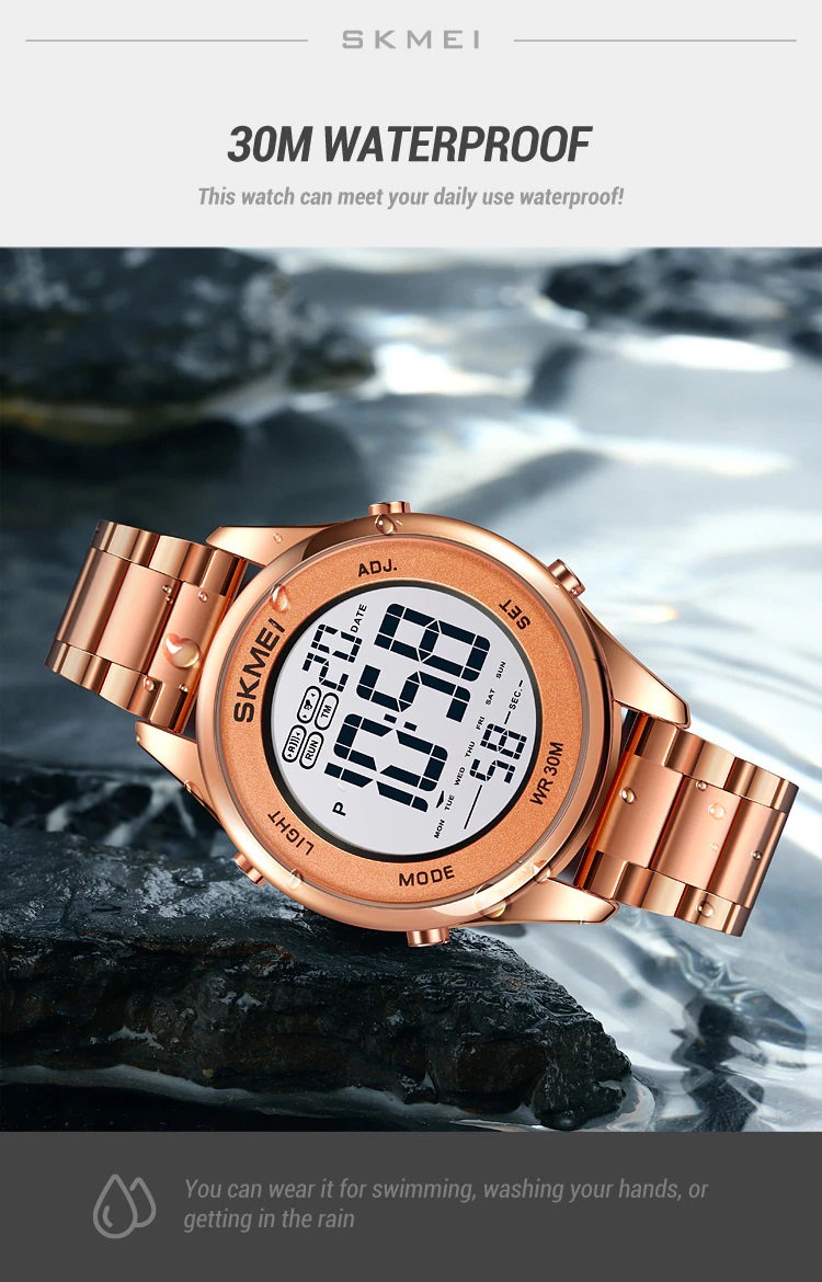 Salah satu kelebihan Jam Tangan SKMEI 1849 yaitu memiliki ketahanan air atau water resistance 30M / 3 ATM / 3 BAR. Sehingga dapat digunakan pada aktivitas seperti cuci tangan, mandi, dan berenang dengan aman.