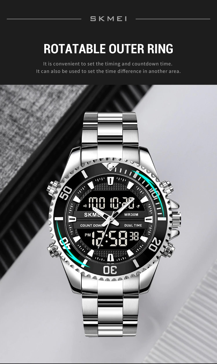 Jam Tangan SKMEI Seri 1850 dilengkapi dengan tampilan dan desain yang modern. Jam Tangan ini sangat cocok digunakan untuk keperluan sehari-hari khususnya bagi kaum pria untuk terlihat lebih unggul, keren dan macho.