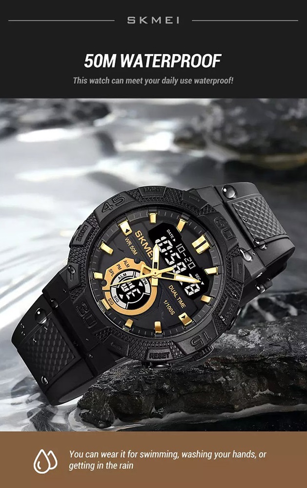 Arloji Tahan Air (Waterproof) SKMEI hadir dilengkapi dengan petunjuk waktu digital dan analog yang unik dan bergaya. Selain itu Jam Tangan ini mempunyai beragam fitur lainnya seperti Shock Resistant (Tahan Banting), El Light, Calendar, Stopwatch, Alarm, dll. Jenis Kelengkapan fitur berbeda pada setiap jam dan dapat dilihat langsung pada foto deskripsi produk untuk lebih jelasnya.