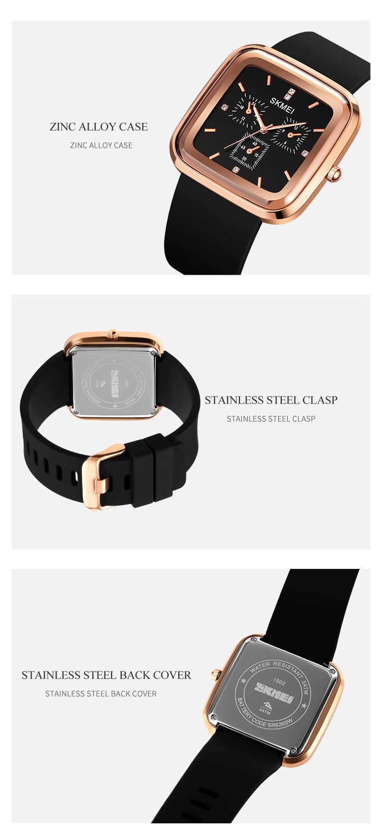 Salah satu kelebihan Jam Tangan SKMEI 1902 yaitu memiliki ketahanan air atau water resistance 30M / 3 ATM / 3 BAR. Sehingga dapat digunakan pada aktivitas seperti cuci tangan, mandi, dan berenang dengan aman.