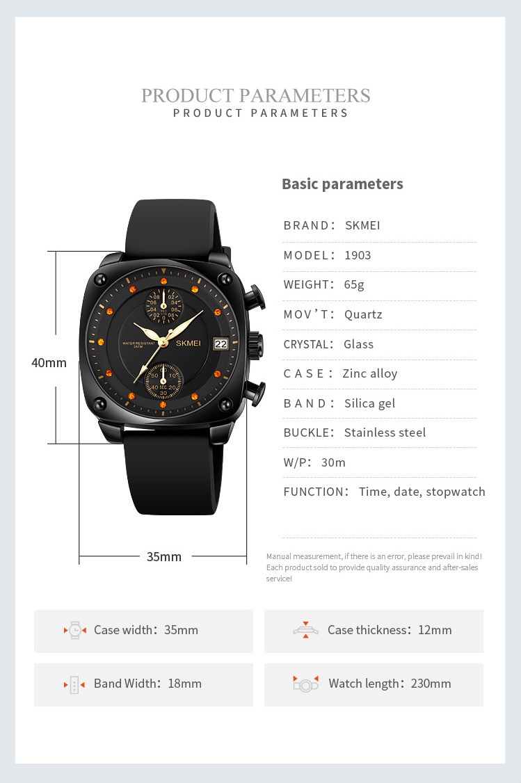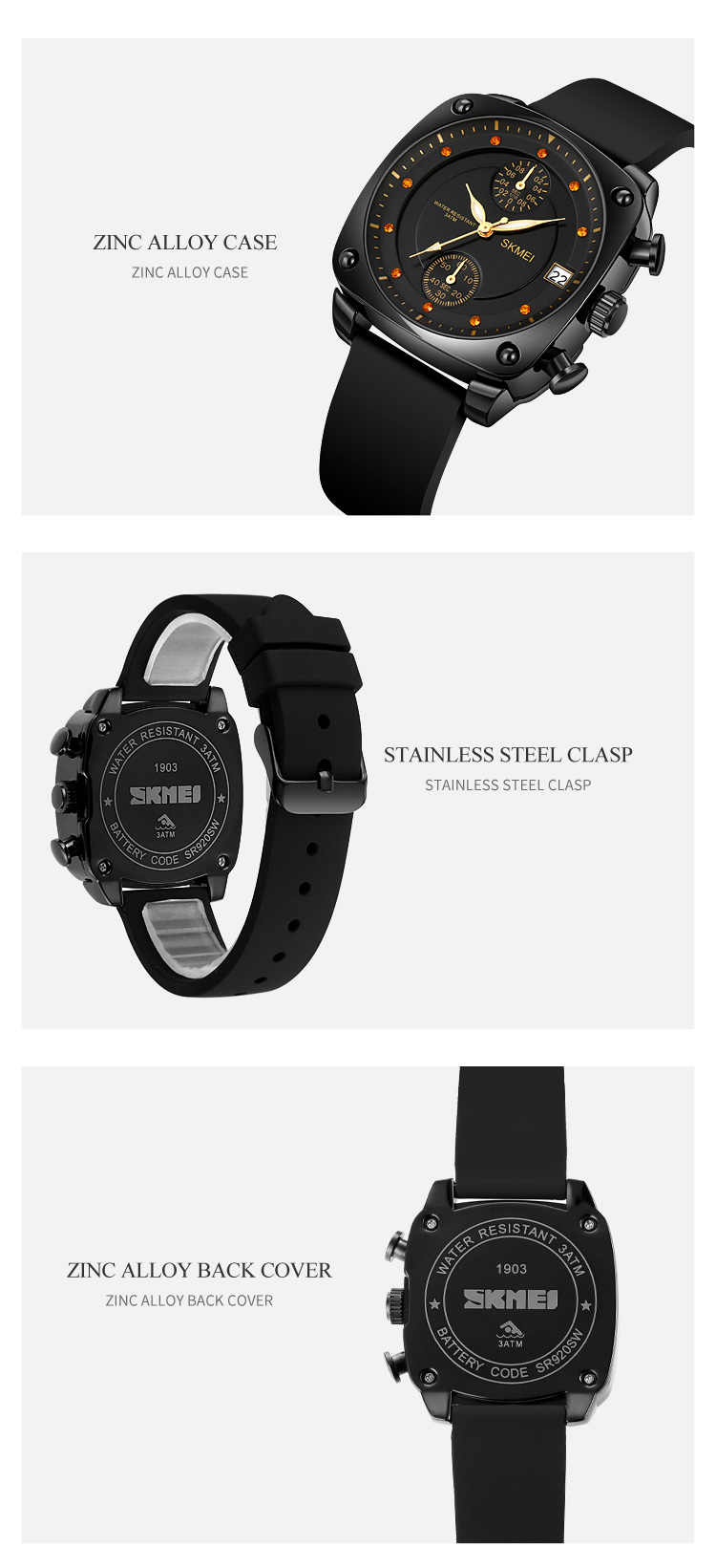 Jam Tangan SKMEI Seri 1903 dilengkapi dengan tampilan dan desain yang modern. Jam Tangan ini sangat cocok digunakan untuk keperluan sehari-hari khususnya bagi kaum pria untuk terlihat lebih unggul, keren dan macho.