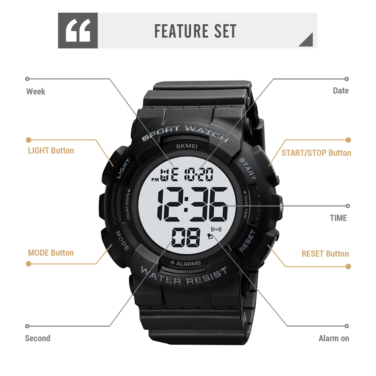 Arloji Tahan Air (Waterproof) SKMEI hadir dilengkapi dengan petunjuk waktu digital yang unik dan bergaya. Selain itu Jam Tangan ini mempunyai beragam fitur lainnya seperti Shock Resistant (Tahan Banting), El Light, Calendar, Stopwatch, Alarm, dll. Jenis Kelengkapan fitur berbeda pada setiap jam dan dapat dilihat langsung pada foto deskripsi produk untuk lebih jelasnya.
