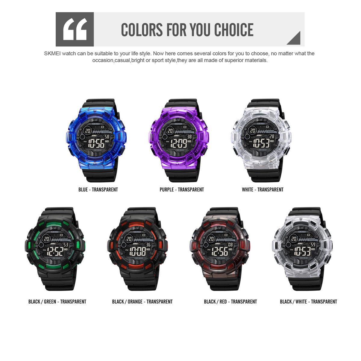 Kaca Jam Tangan Digital SKMEI 2110 ini terbuat dari bahan kaca yang terkenal awet dan tidak mudah pecah yaitu dengan material resin glass.