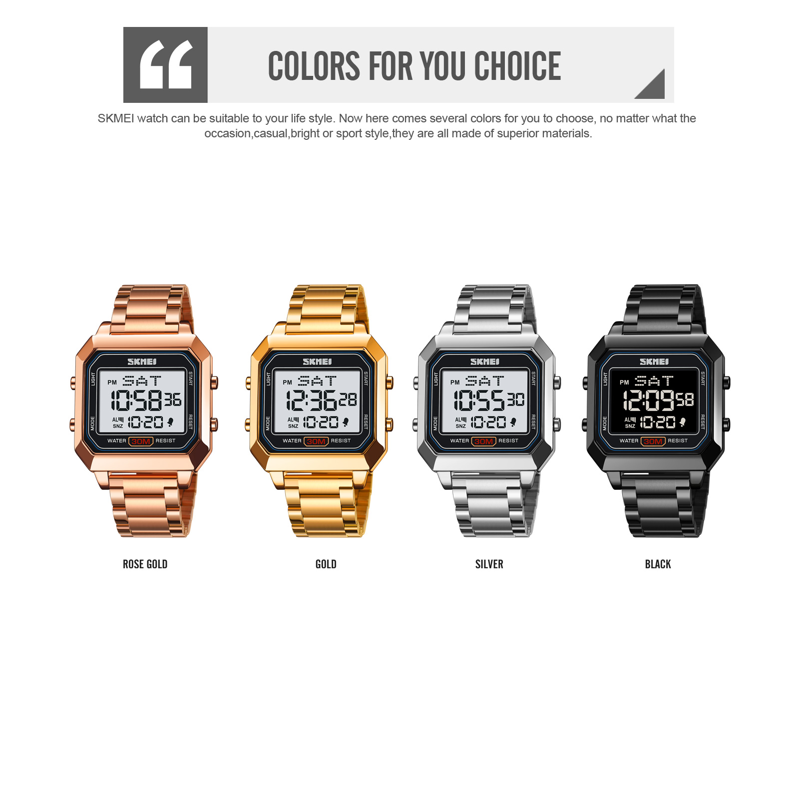 Kaca Jam Tangan Digital SKMEI 2149 ini terbuat dari bahan kaca yang terkenal awet dan tidak mudah pecah yaitu dengan material resin glass.