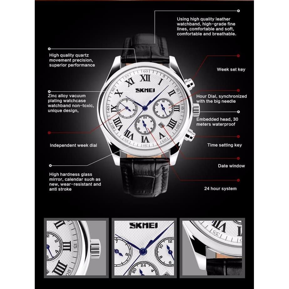 Bagian strap atau tali Jam Tangan SKMEI 9078 terbuat dari bahan Leather yang memiliki kualitas awet dan baik dibandingkan Merk kelas serupa lainnya.