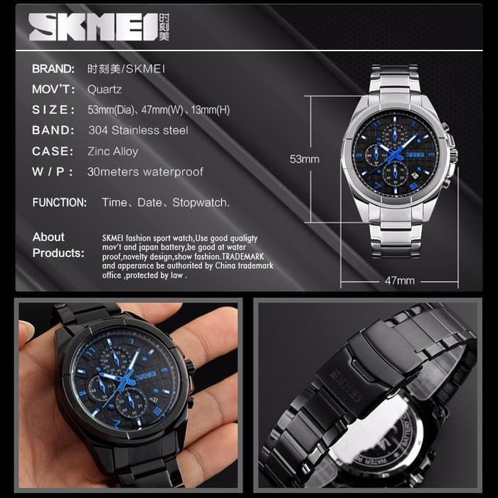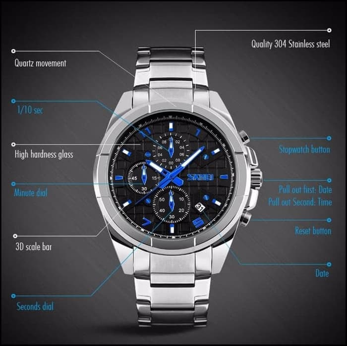 Bagian strap atau tali Jam Tangan SKMEI 9109 terbuat dari bahan Stainless Steel yang memiliki kualitas awet dan baik dibandingkan Merk kelas serupa lainnya.