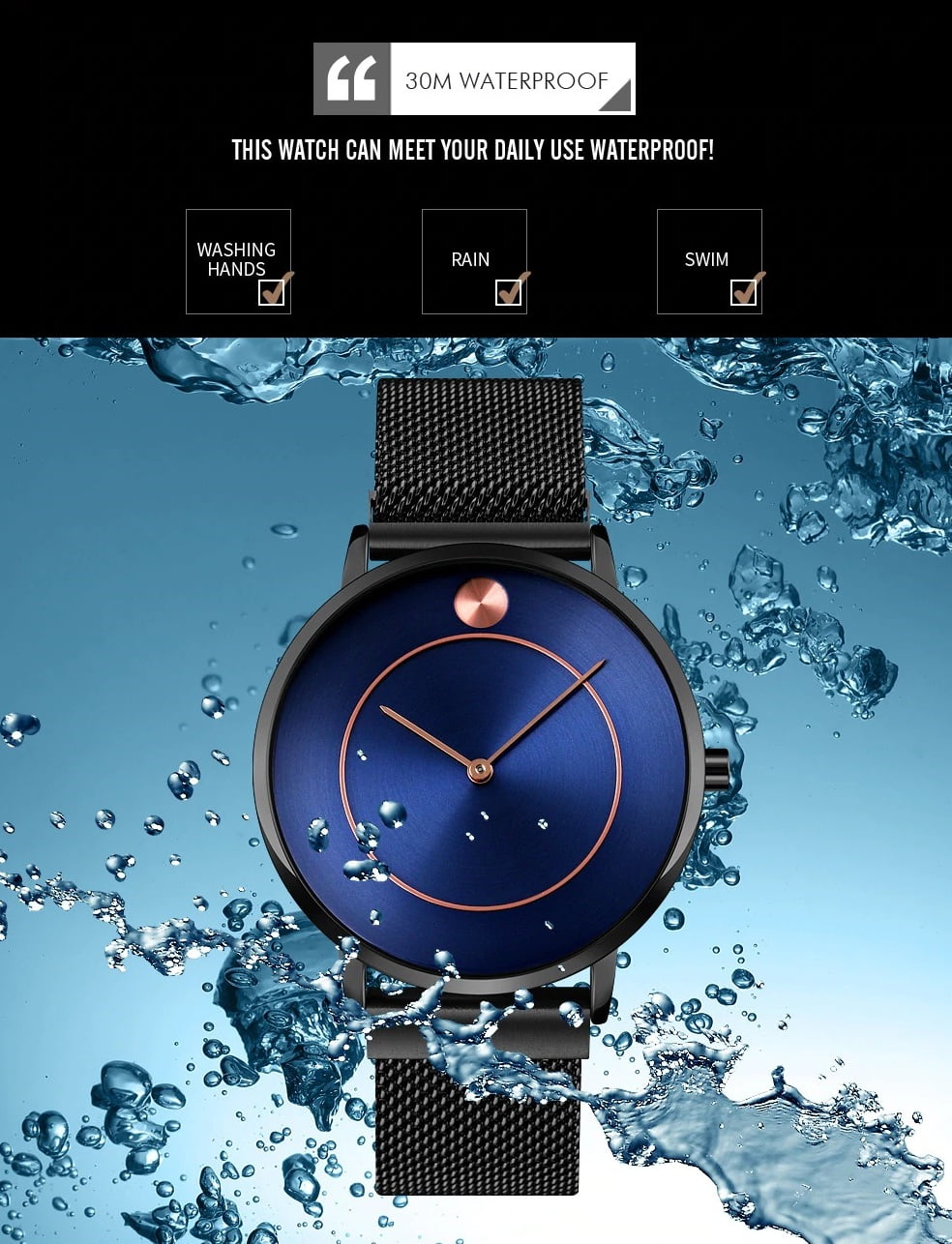 Salah satu kelebihan Jam Tangan SKMEI 9197 yaitu memiliki ketahanan air atau water resistance 30M / 3 ATM / 3 BAR. Sehingga dapat digunakan pada aktivitas seperti cuci tangan,dan Wudhu.