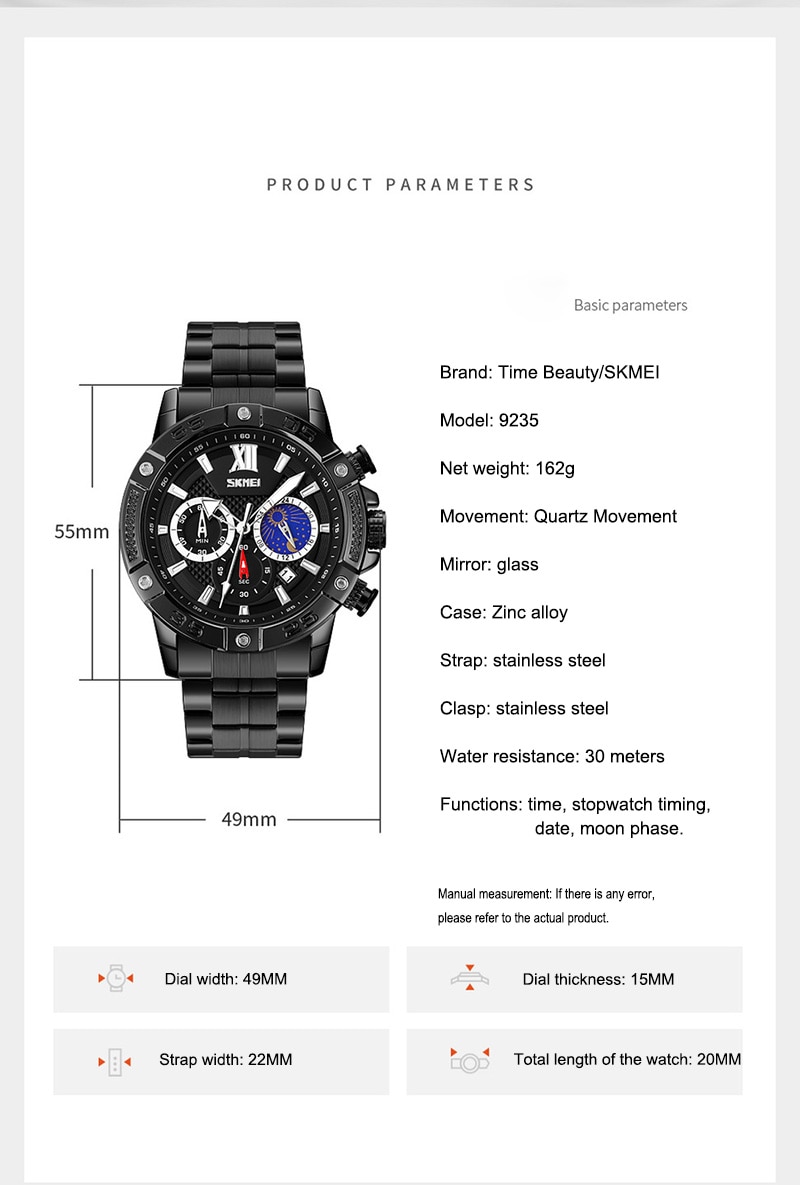 Bagian strap atau tali Jam Tangan SKMEI 9235 terbuat dari bahan rantai yang memiliki kualitas awet dan baik dibandingkan Merk kelas serupa lainnya.