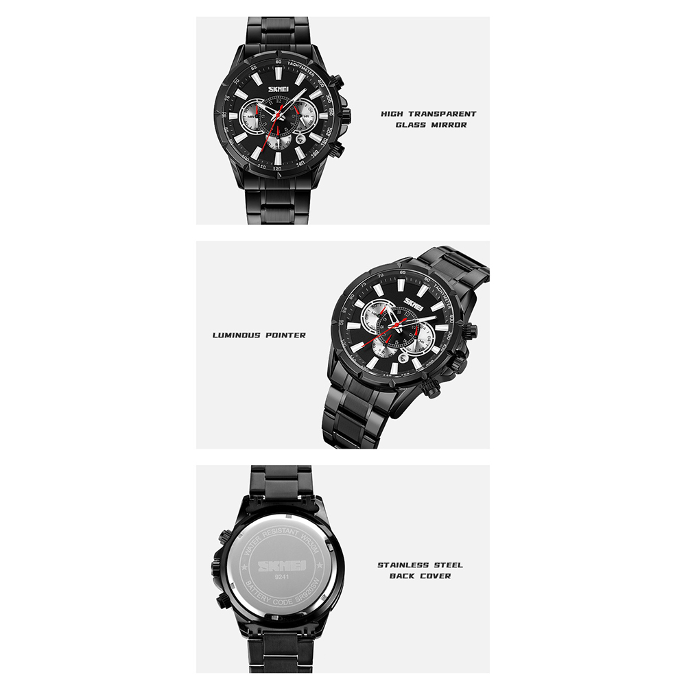 Jam Tangan SKMEI Seri 9241 dilengkapi dengan tampilan dan desain yang modern. Jam Tangan ini sangat cocok digunakan untuk keperluan sehari-hari khususnya bagi kaum pria untuk terlihat lebih unggul, keren dan macho.