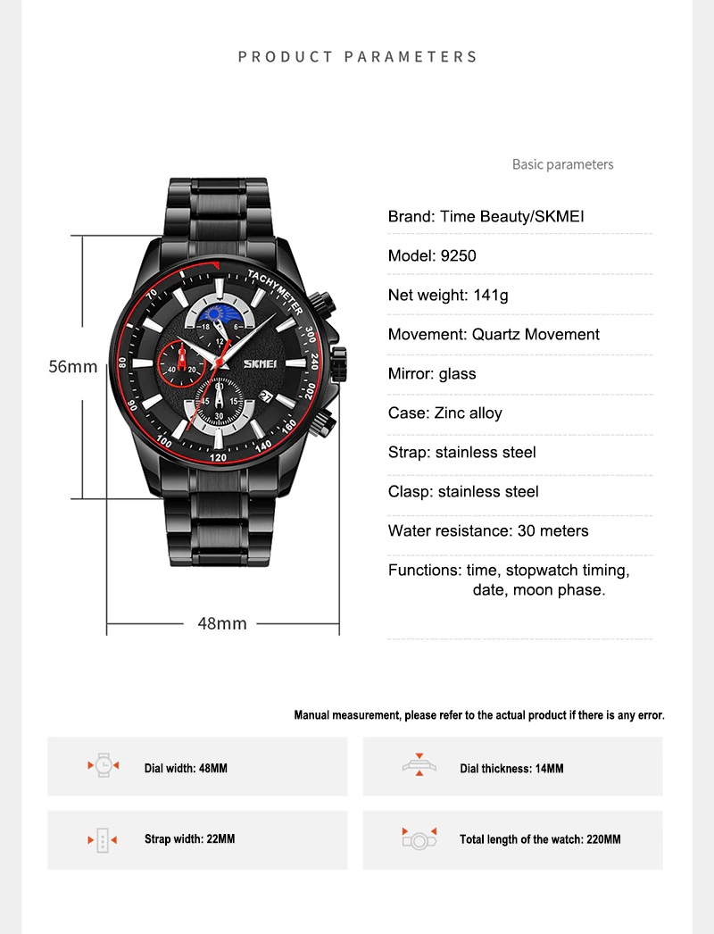 Bagian strap atau tali Jam Tangan SKMEI 9250 terbuat dari bahan rantai yang memiliki kualitas awet dan baik dibandingkan Merk kelas serupa lainnya.