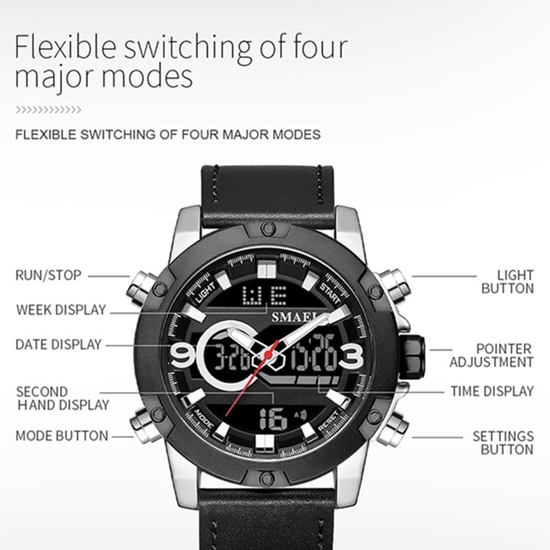 Jam Tangan SMAEL Seri 1320 dilengkapi dengan tampilan dan desain yang modern. Jam Tangan ini sangat cocok digunakan untuk keperluan sehari-hari khususnya bagi kaum Pria untuk terlihat lebih unggul, keren dan Maco.