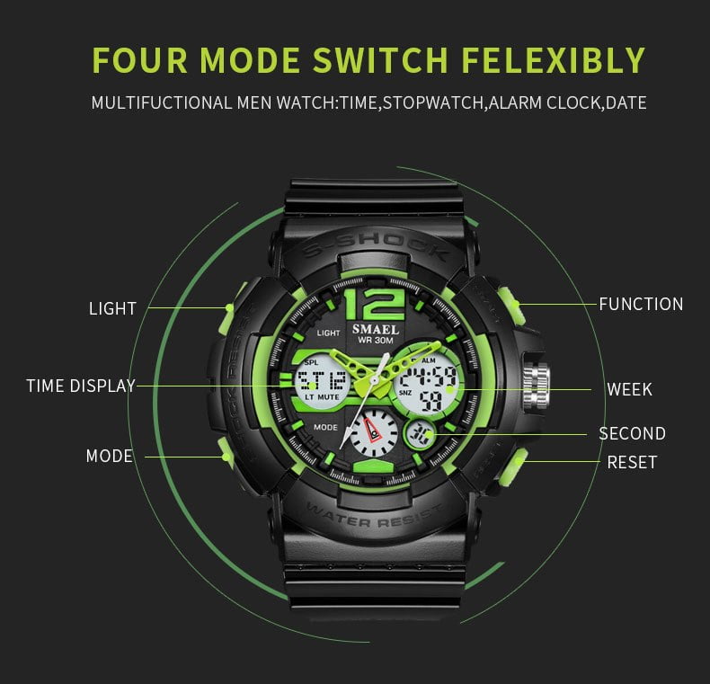 Salah satu kelebihan Jam Tangan SMAEL 1415 yaitu memiliki ketahanan air atau water resistance 50M / 5 ATM / 5 BAR. Sehingga dapat digunakan pada aktivitas seperti cuci tangan,dan Wudhu.