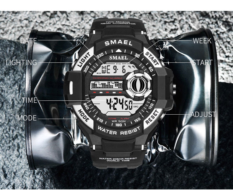 Salah satu kelebihan Jam Tangan SMAEL 1516B yaitu memiliki ketahanan air atau water resistance 50M / 5 ATM / 5 BAR. Sehingga dapat digunakan pada aktivitas seperti cuci tangan,dan Wudhu.