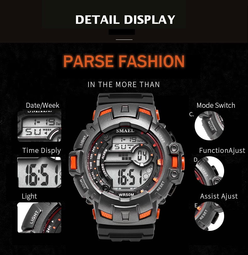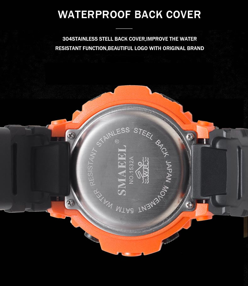 Salah satu kelebihan Jam Tangan SMAEL 1532A yaitu memiliki ketahanan air atau water resistance 50M / 5 ATM / 5 BAR. Sehingga dapat digunakan pada aktivitas seperti cuci tangan,dan Wudhu.