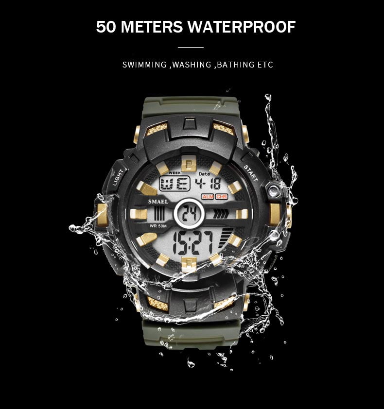 Salah satu kelebihan Jam Tangan SMAEL 1532B yaitu memiliki ketahanan air atau water resistance 50M / 5 ATM / 5 BAR. Sehingga dapat digunakan pada aktivitas seperti cuci tangan,dan Wudhu.