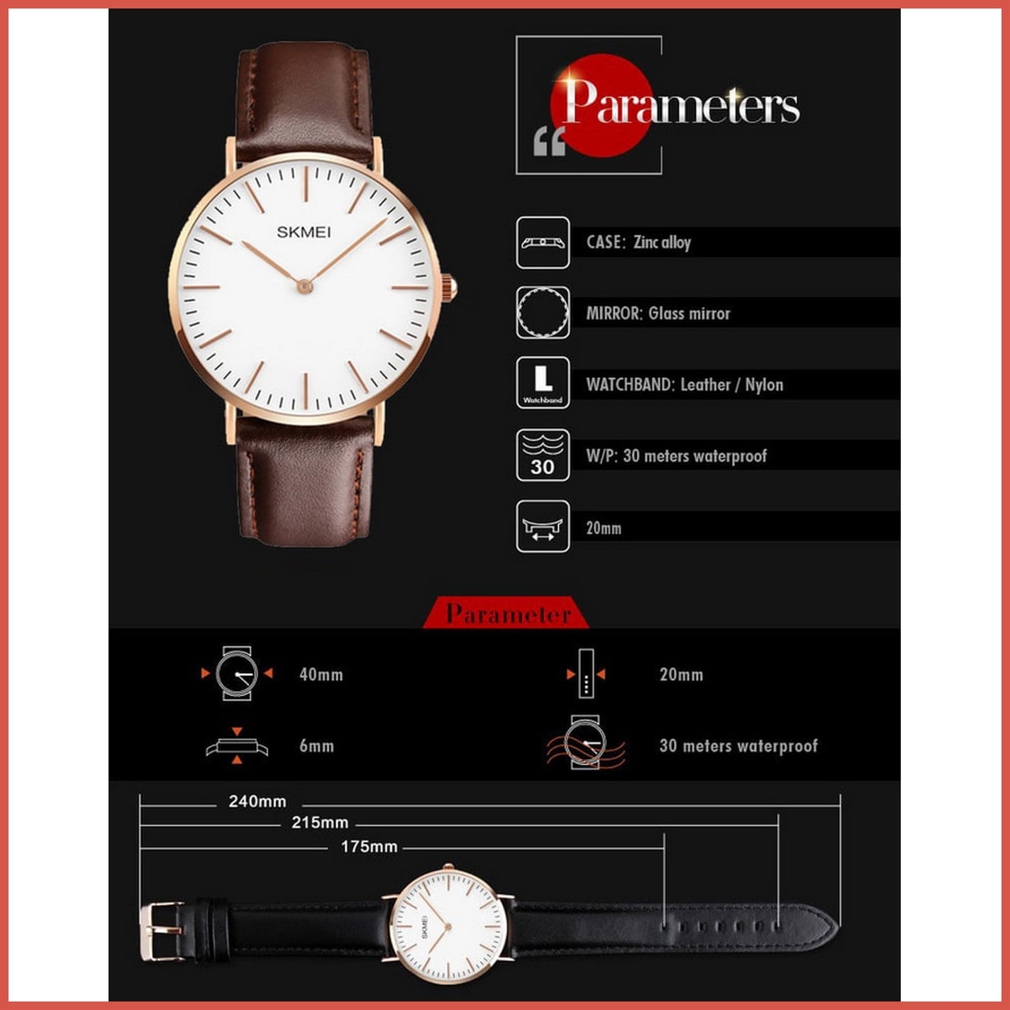 Bagian strap atau tali Jam Tangan SKMEI 1181 terbuat dari bahan Kulit yang memiliki kualitas awet dan baik dibandingkan Merk kelas serupa lainnya.