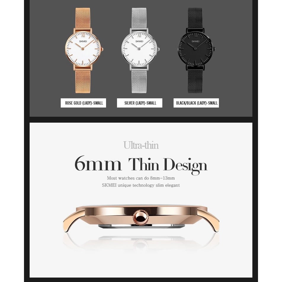 Jam Tangan SKMEI Seri 1185 dilengkapi dengan tampilan dan desain yang modern. Jam Tangan ini sangat cocok digunakan untuk keperluan sehari-hari khususnya bagi kaum Wanita untuk terlihat lebih unggul, keren dan Elegant.