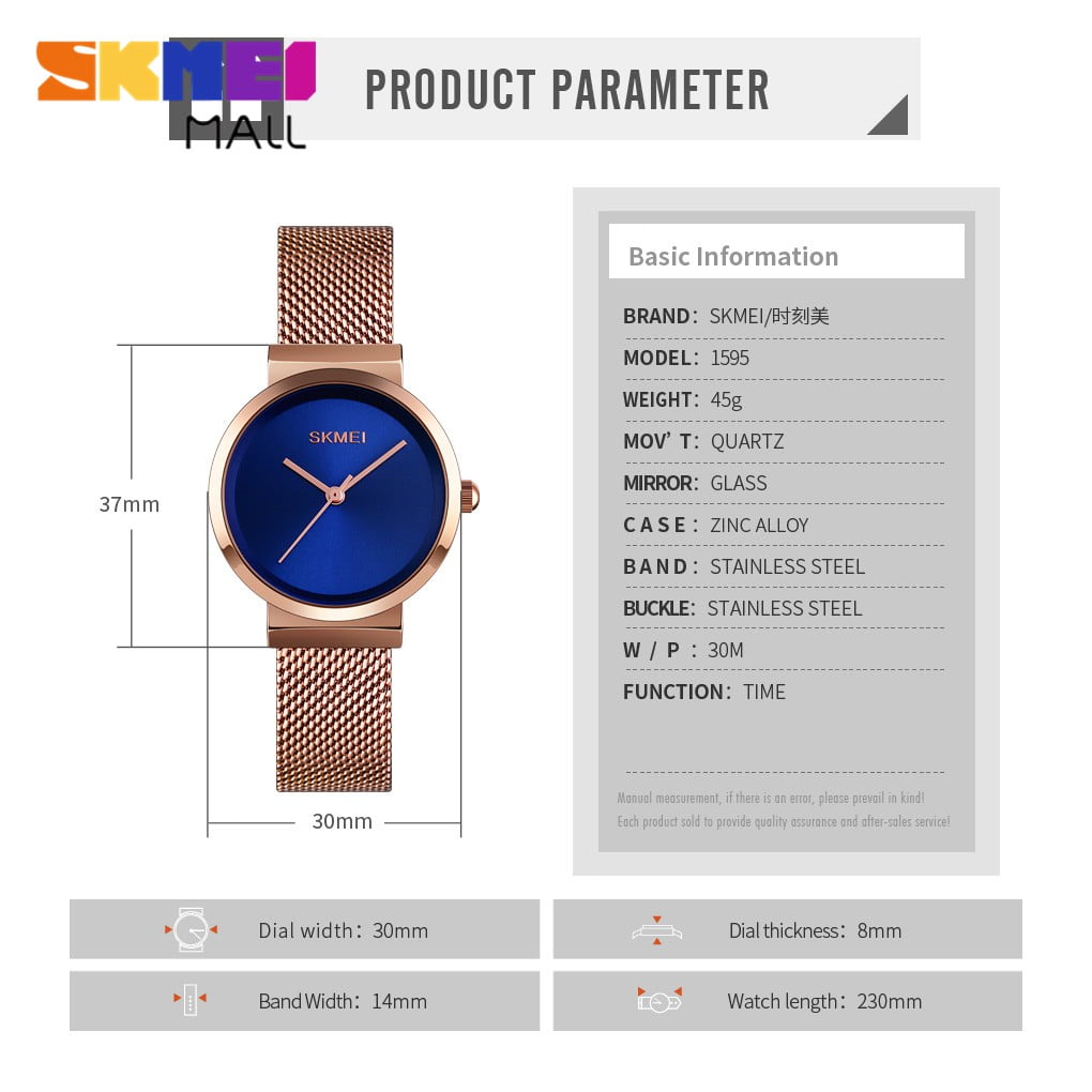 Jam Tangan SKMEI Seri 1595 dilengkapi dengan tampilan dan desain yang modern. Jam Tangan ini sangat cocok digunakan untuk keperluan sehari-hari khususnya bagi kaum Wanita untuk terlihat lebih unggul, keren dan Elegant.